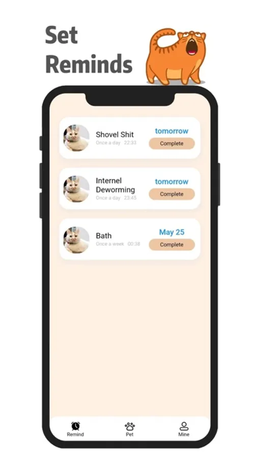 You can set individual reminders for each pet's vaccination, deworming, and poop shoveling schedule