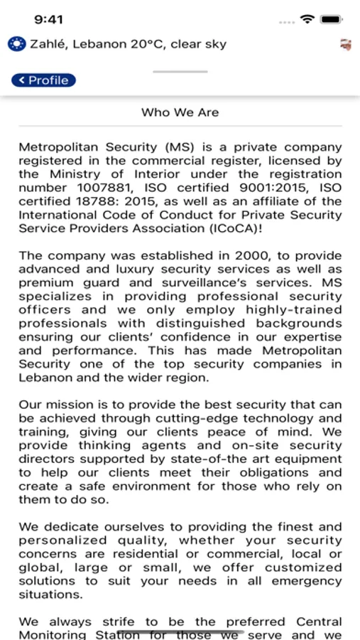 This app has been created by Metropolitan Security, a highly professional and dedicated security company based in Beirut.