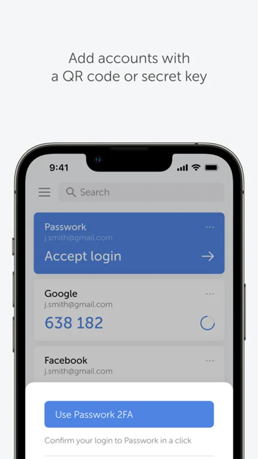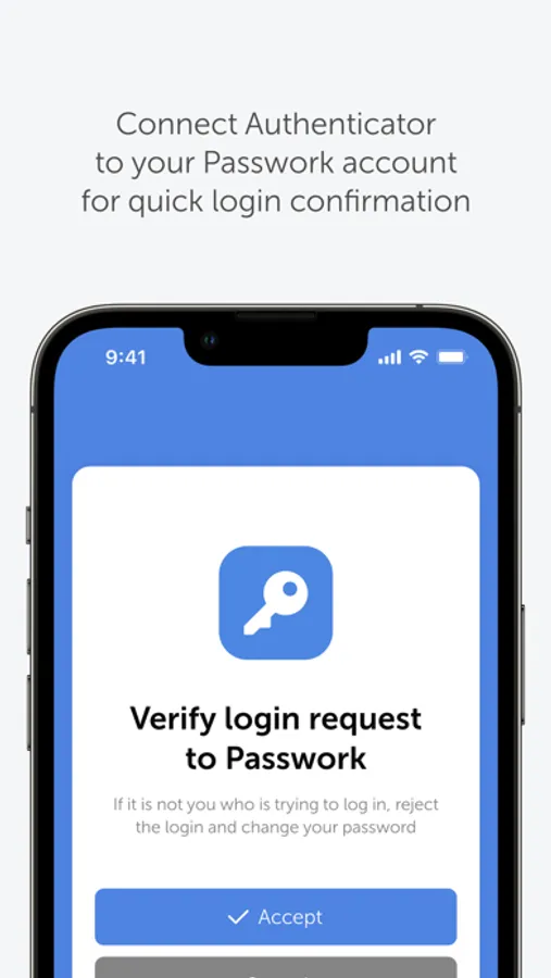 – Connect Authenticator to your Passwork account for quick login confirmation