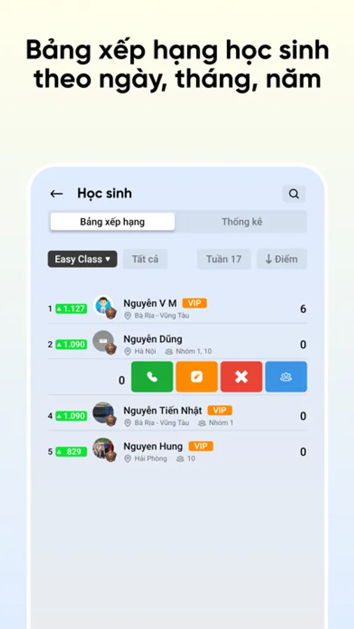 - Tạo nhóm, phân loại học sinh theo độ tuổi, kỹ năng, mục tiêu.