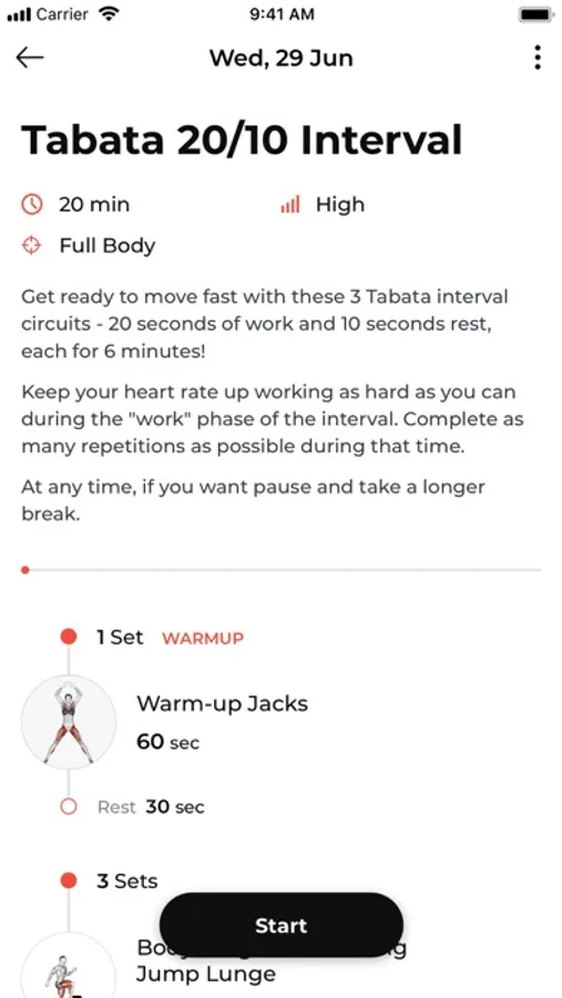 App also uses Apple Health to track energy burned and heart rate during a workout session, if an Apple Watch is used.