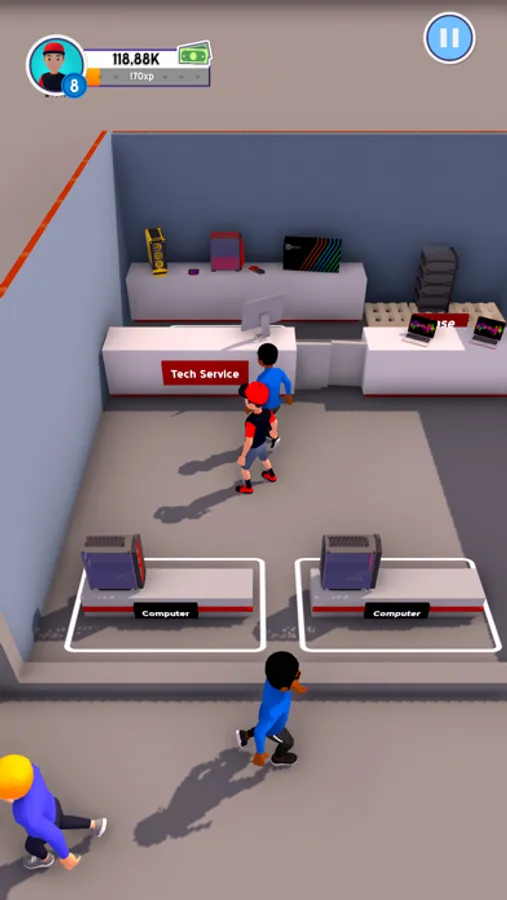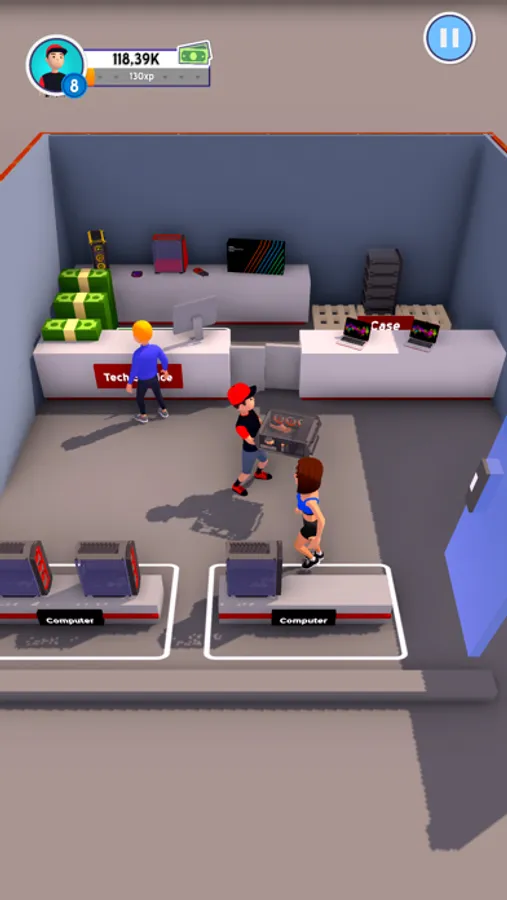 Your journey to becoming a tech tycoon starts with your first store, you will sell PC cases in the neighbourhood and fix some faulty devices to make some money.