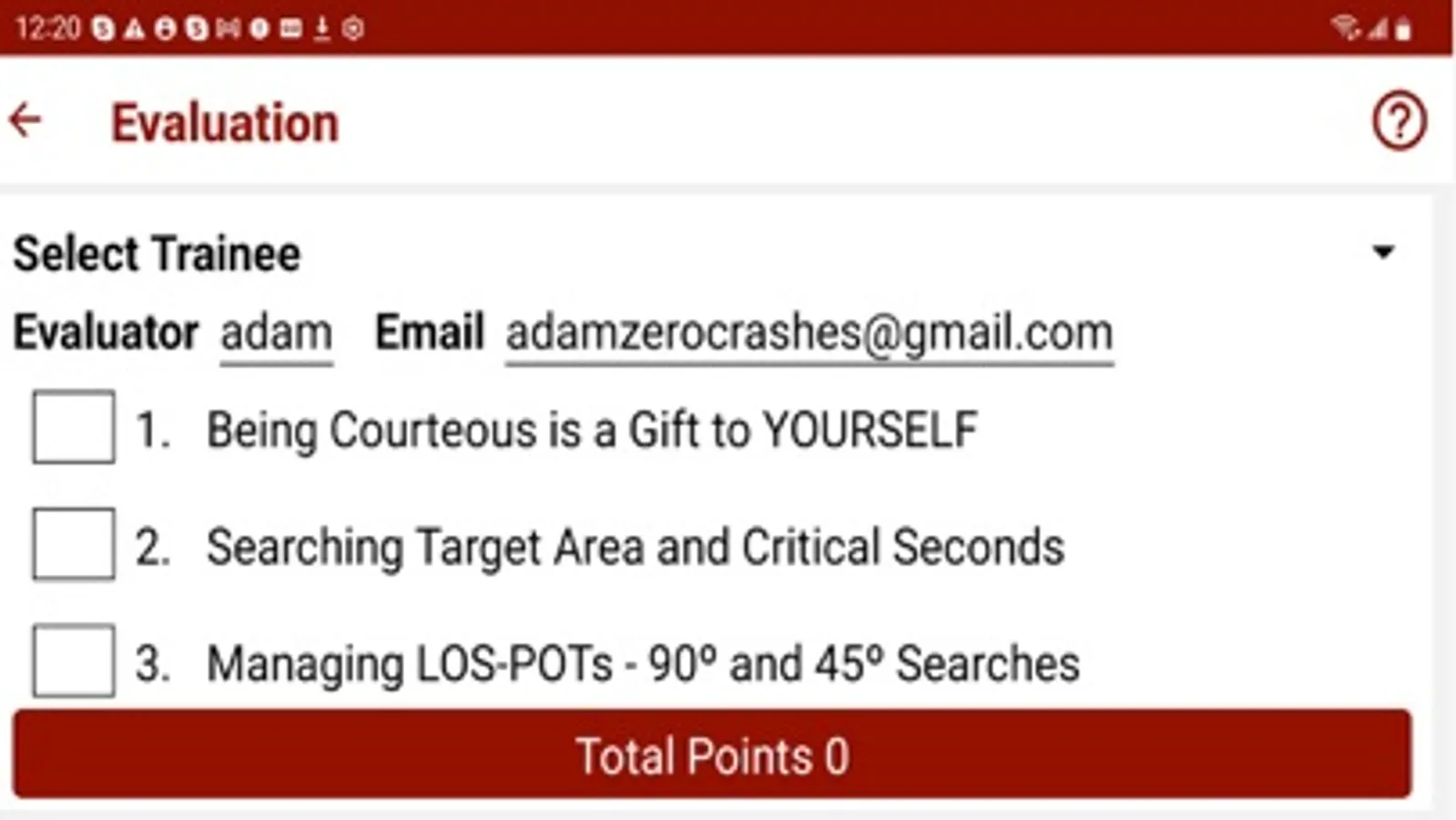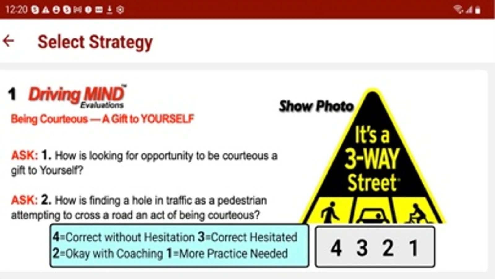 This APP provides families and licensing agencies with an effective driver licensing exam that evaluates a driver's habits for managing space to eliminate crashes. Parents can use this evaluation process to measure the Zone Control Strategies that a teen performs by habits to prevent crashes while operating within the roadway system as a pedestrian, passenger, bicyclist, and driver. The current licensing exam only evaluates basic car control skills, while most crashes result from roadway users' lack of awareness to manage speed and lane positions to control the critical seconds before a potential crash, which this APP is capable of evaluating.