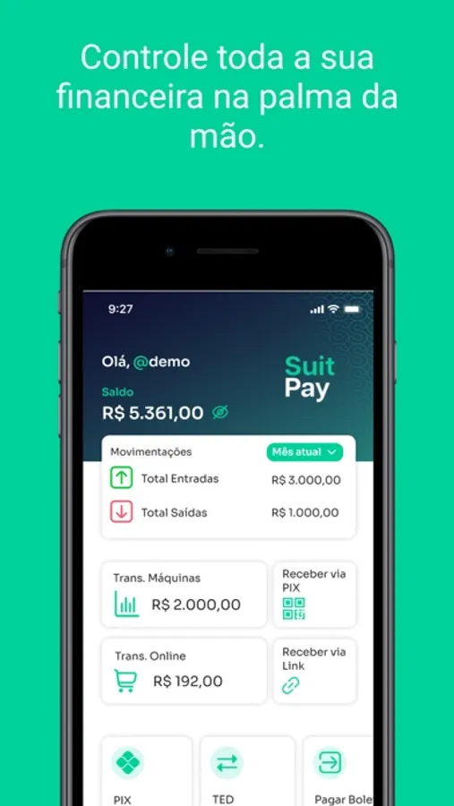 O aplicativo SuitPay permite que o usuário utilize todas as funcionalidades da sua conta digital em seu smartphone. Dentre essas funcionalidades está o saldo bancária, realização de transações, emissão de boletos, consulta de dados da dado e muito mais. No futuro pretendemos aperfeiçoar a usabilidade do usuário em nosso aplicativo bem como adicionar novos produtos em nosso app.