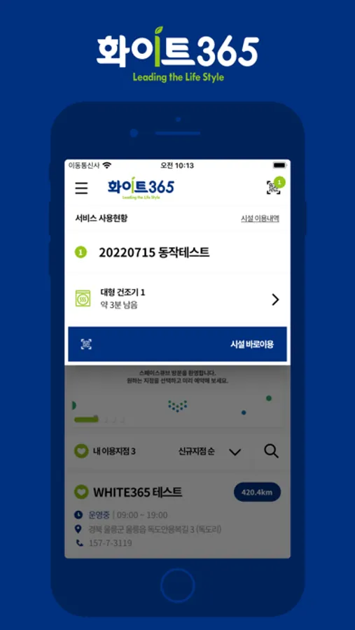 깨끗하고 건강한 생활공간을 선도하는 프리미엄 명품 빨래방 화이트365를 위한 전용앱입니다.