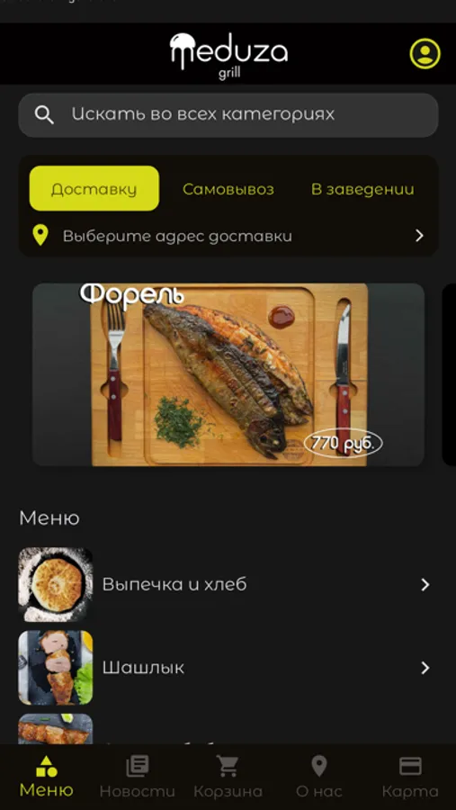 Голоден? Закажи доставку или самовывоз у Meduza Grill через приложение в несколько кликов.
