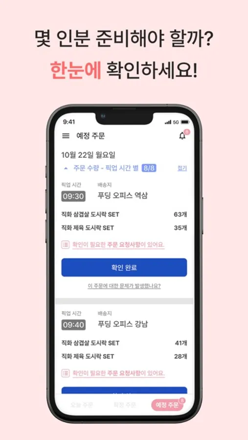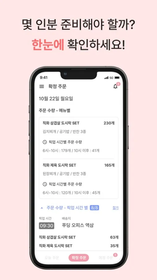 배송지와 시간, 수량이 확정된 주문은 '확정 주문' 탭에서 확인하세요!