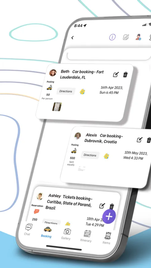 You can upload a photo of your airbnb, flight, restaurant, cruise, concert and Slap will take care of sharing directions and storing the important details in the notes. It will also remind you of your departure and reservation times. Slap will settle your expenses automatically with the other group members. Use the car pooling feature to offer rides or seats and allow other members to sign up.