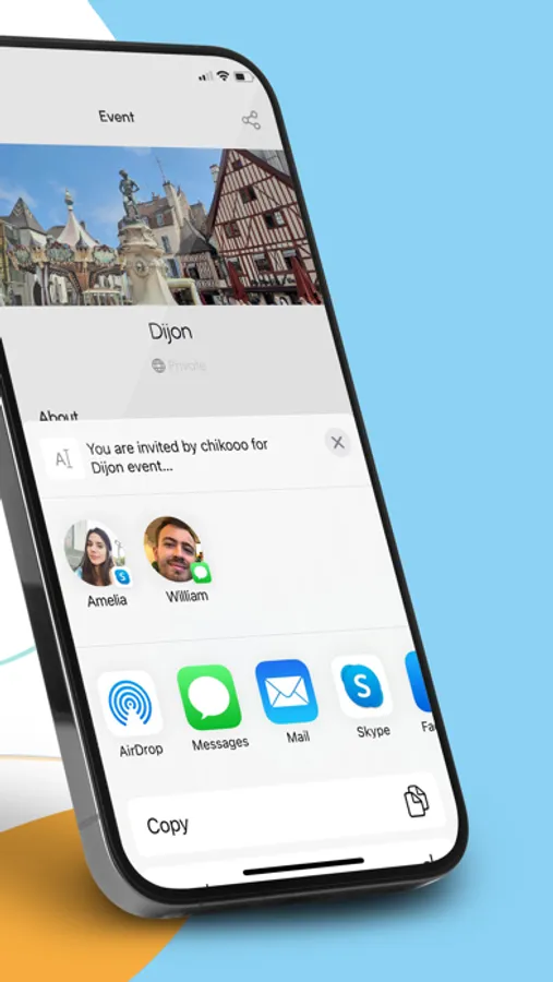 Invite your friends and family directly from your contacts, Facebook or share the invite via link. For the contacts who have the app, it will send a push notification to accept or reject. For those who don’t have the app, it will send a text message with a link to download the app and direct to the event. Host a public event for anyone on the app to view and join.