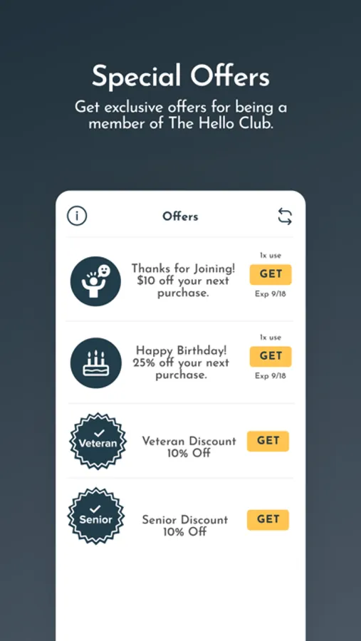 The Hello Club app is a convenient way to sign up for the loyalty program, track your rewards points, order online and stay up to date on the latest promotions and news.