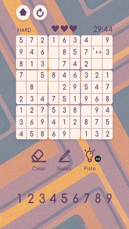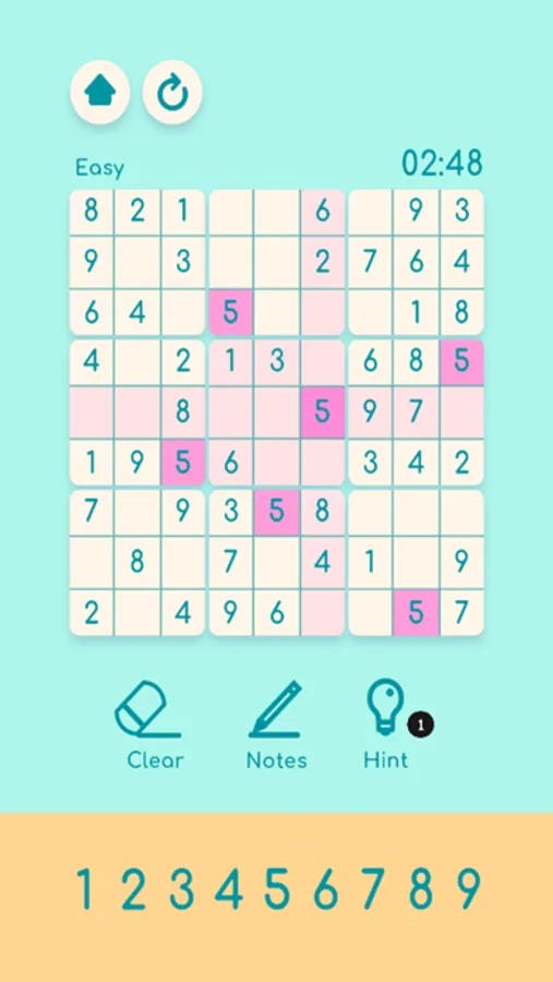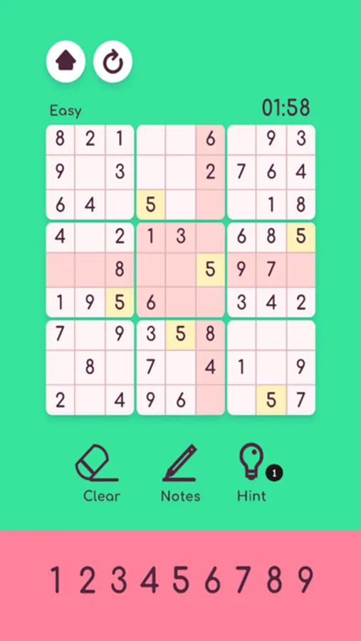If you have not yet played this brain training challenge, but want to learn how to play Sudoku, this simple casual single player game is ideal. The mechanics of this classic sudoku game are very simple. A 9x9 grid will appear on the game screen. Some of these cells will appear with numbers already filled in advance. You have to fill in the blank cells with numbers from 1 to 9, so that each row, each column and each 3X3 sub-grid has no repeated numbers. Similar to puzzle games, fill in all the blanks so that the board is complete.