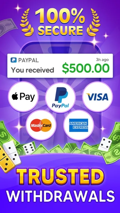 Enjoy classic dominos game to put money up for stake and the winner takes all! Domino Cash--21 century’s popular cash earning app provides entry to convert bonus cash to real money, rank top to win the best prizes & free cash! Withdrawal at any time by any means you prefer: PayPal, Apple Pay, global cash cards...always guard you safe & easy cash out!No longer paying games, let the game pay you!SKILL-BASED DOMINOSPlay on mobile devices anytime & everywhere!