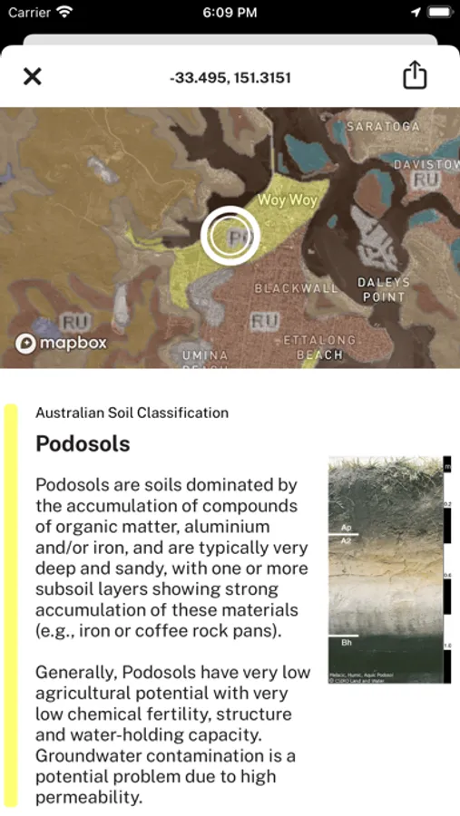 Soils Near Me offers a simple and intuitive way to access key soil information for NSW. It lets you explore data from across the state, and you can allow the app to access your location to show you data relevant to where you are.
