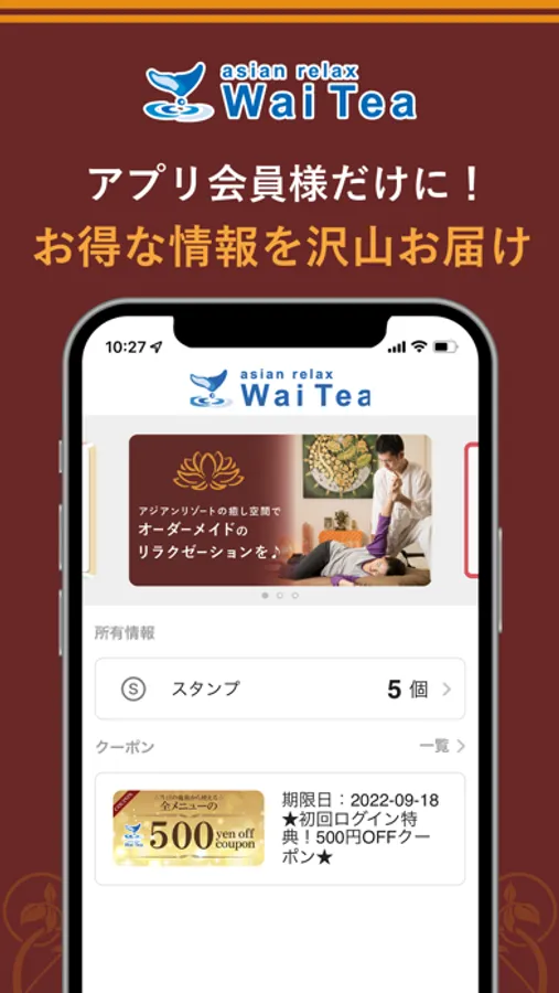 アプリを通してasian relax WaiTeaの新着情報やお得な情報を受け取ることができます。