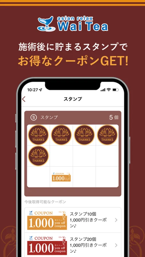 ご来店スタンプをためるとお得なクーポンが発行されます(ご利用条件がある場合がございます)