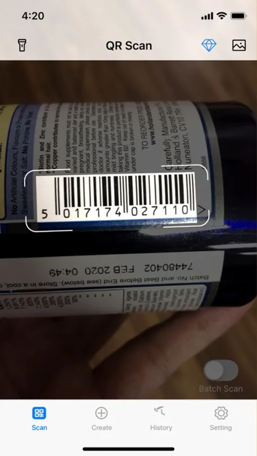 - Scan codes quickly and easily, supporting formats: QR Code, EAN 13, EAN 8, UPC-A, UPC-E, Code 128, PDF417, Aztec, Code 39, Code 93,...