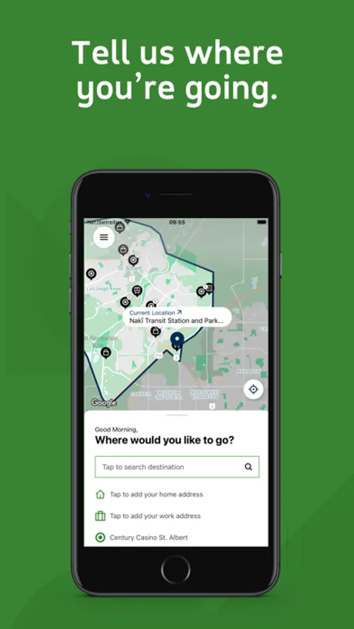 Book-a-Bus allows St. Albert Transit to provide rides where and when they are requested without the need for extra buses to operate fixed-route service. This saves valuable resources and reduces CO2 emissions. With a couple of taps, you can do your part to make your city a little bit greener and cleaner, every time you ride.