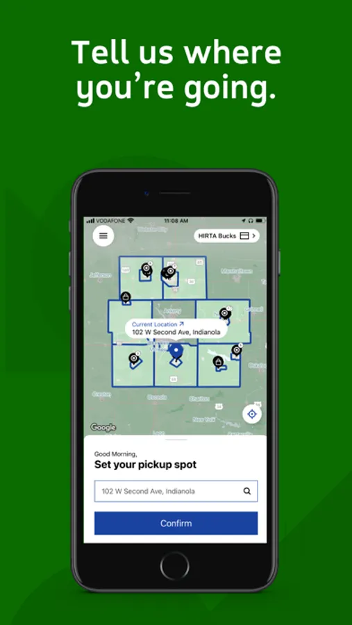 Start by downloading the HIRTA On-Demand app. Already a HIRTA client? Enter your phone number on file. Feel free to call 1 (877) 686-0029 to confirm your account information. New to HIRTA? Create an account using your name, phone number and email address. Confirm your location and input your destination to see the ride options. Then, book your ride and track it in real time.