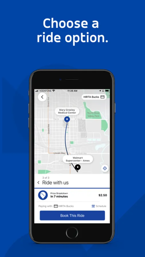 You can use the HIRTA On-Demand app to book rides, either same day or in advance. If you are traveling to Des Moines, you can book a trip by calling 1 (877) 686-0029.