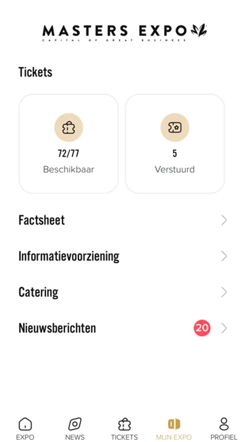 Participants in MASTERS EXPO will find all relevant information about their participation in one overview under MY MASTERS EXPO. They will also find the complete MASTERS manual as well as opening hours here. You can order extra (relationship and/or crew) tickets in the MASTERS EXPO app, and you will be kept up to date on important deadlines, the latest news, contacts, press releases, programs, presentations, and preferred suppliers.