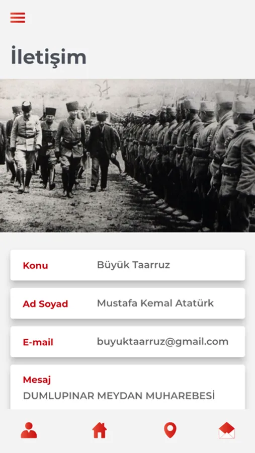 Turklerin sanli zaferini konu olarak alan “Buyuk Taarruz “ adli mobil uygulama, tarihin dijital bir medya araci olarak kullanicilara ulastirilmasini ve teknoloji cagina adapte olarak yasatilmasini amaclamaktadir. Bu dogrultuda mobil uygulama icerisinde su ozellikler yer almaktadir: