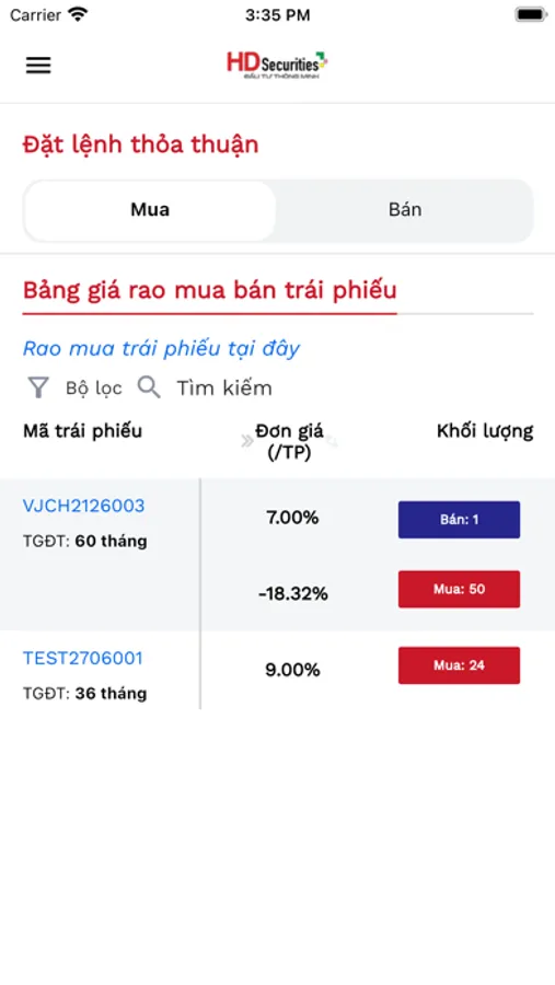 + Đặt lệnh mua/bán trái phiếu