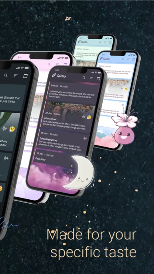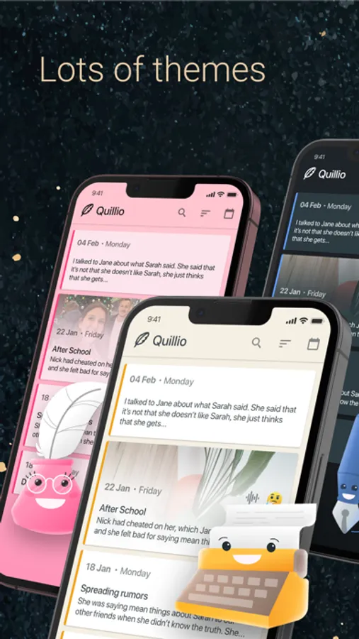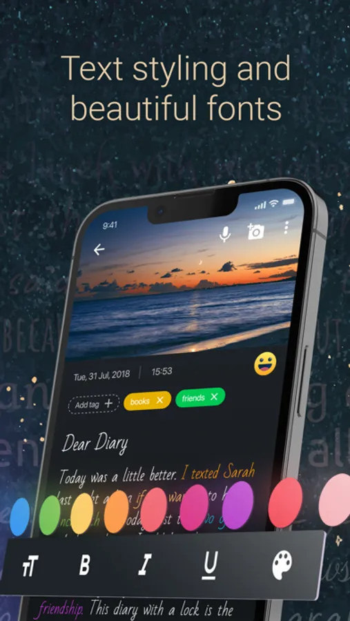 2. Themes and fonts - We give you the freedom to personalize your diary layout with appealing themes and to beautify your writing with fancy fonts.