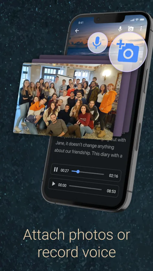 7. Achievements - We encourage you to write notes and keep your journal notebook active by sharing small wins with you. Write about your ups and downs and keep an eye on your feelings through our mood tracker. Write journal entries not only with words but also with photos, sounds and emojis.