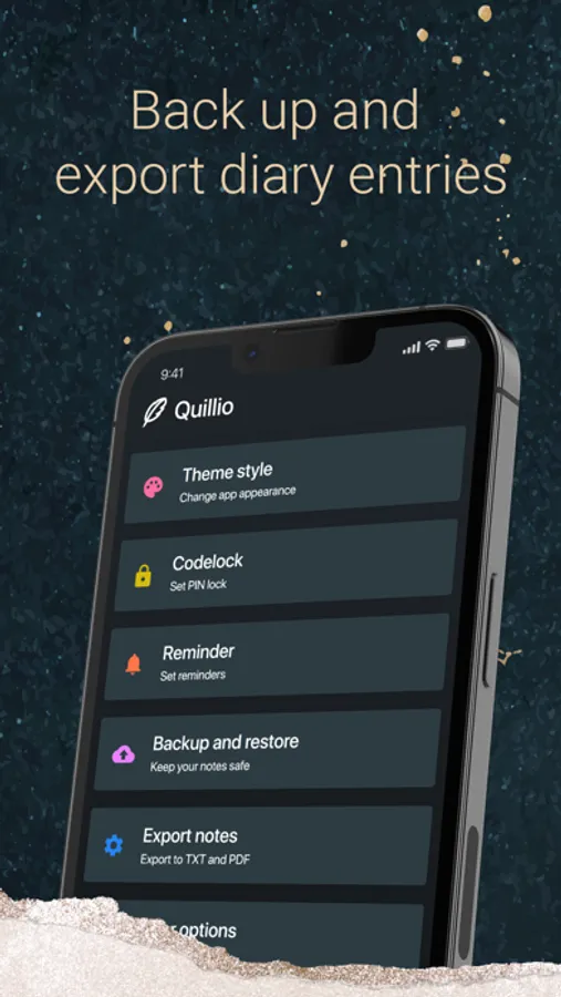5. Backup to iCloud - Record your memories and life chapters and save them right into the digital eternity. Export the entries to TXT or include pictures and save them to PDF. Restore your notebook app with a few clicks on any iOS device.