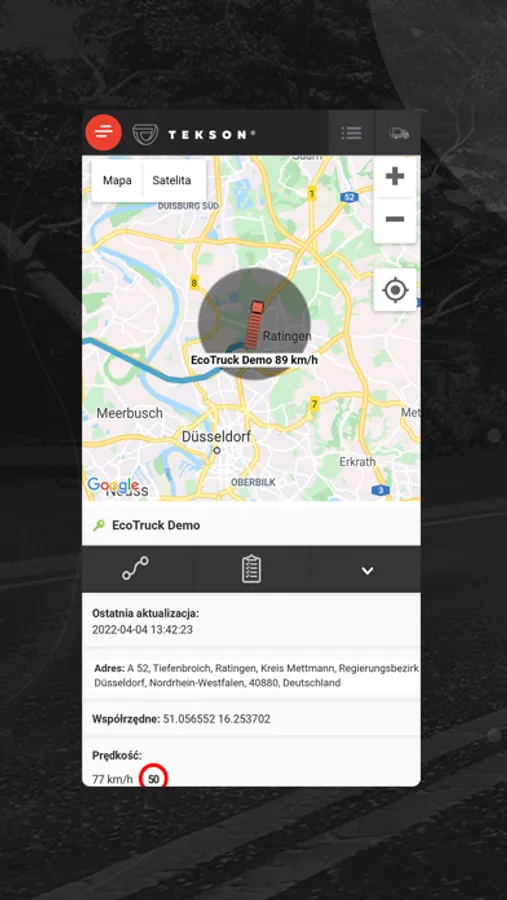 Aplikacja do śledzenia pojazdów w czasie rzeczywistym wyposażonych w urządzenie od dystrybutorów marki TEKSON. Wspiera monitorowanie floty oraz umożliwia generowanie szczegółowych raportów. Sprawdź szczegóły na www.tekson.eu.