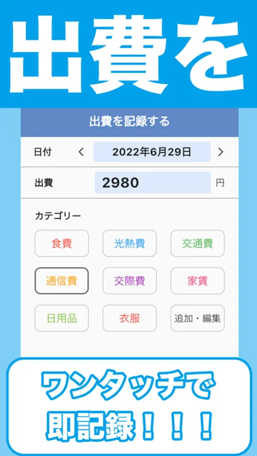 日々の出費を管理できる家計簿アプリです!