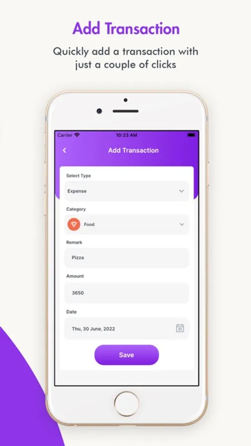 - You can quickly add a transaction with just a couple of clicks.