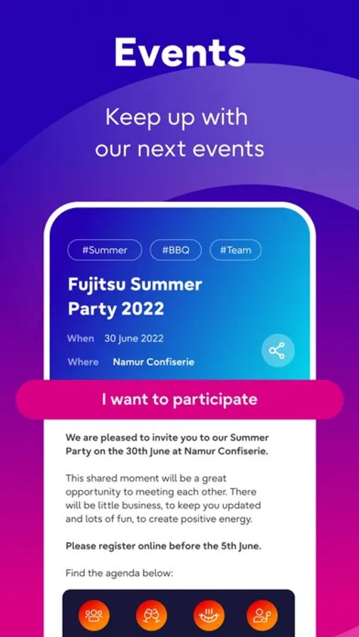 Upload the app and be up to date regarding all the news and events organized by Fujitsu Luxembourg