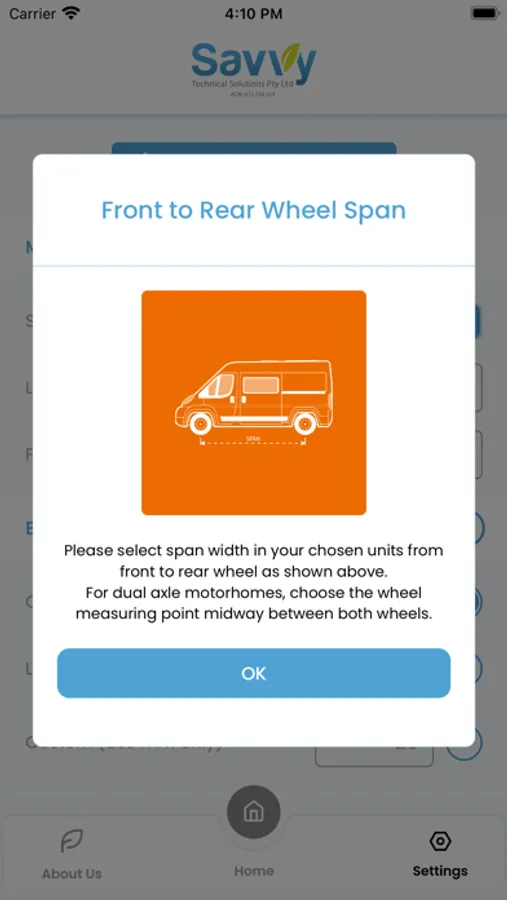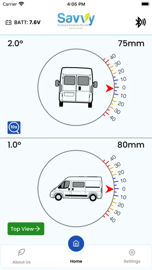 The SavvyLevel system is a complete light weight, low cost fully integrated levelling solution for Motorhomes/4WD/RV. This app communicates, via Bluetooth, with the SavvyLevel device mounted inside your vehicle and displays your vehicle’s level with an accuracy  of plus or minus 0.1 of a degree over the full environmental operating range. It reports pitch, roll and, additionally, individual wheel height adjustment required to efficiently and perfectly level your vehicle in mm, inches or block height number, single handedly from within your vehicle.