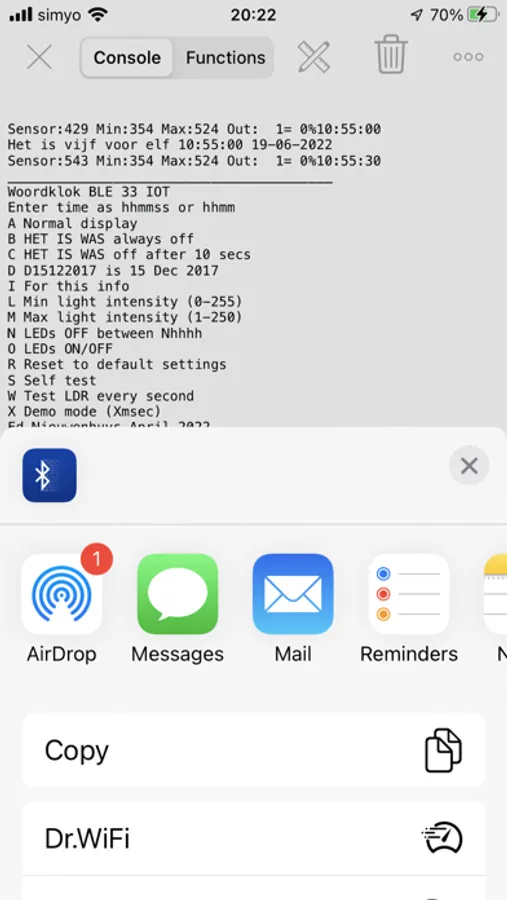 Unlike most apps strings over 20 bytes are not truncated making is possible to use descriptive menu's to communicate with the BLE equipped computer.