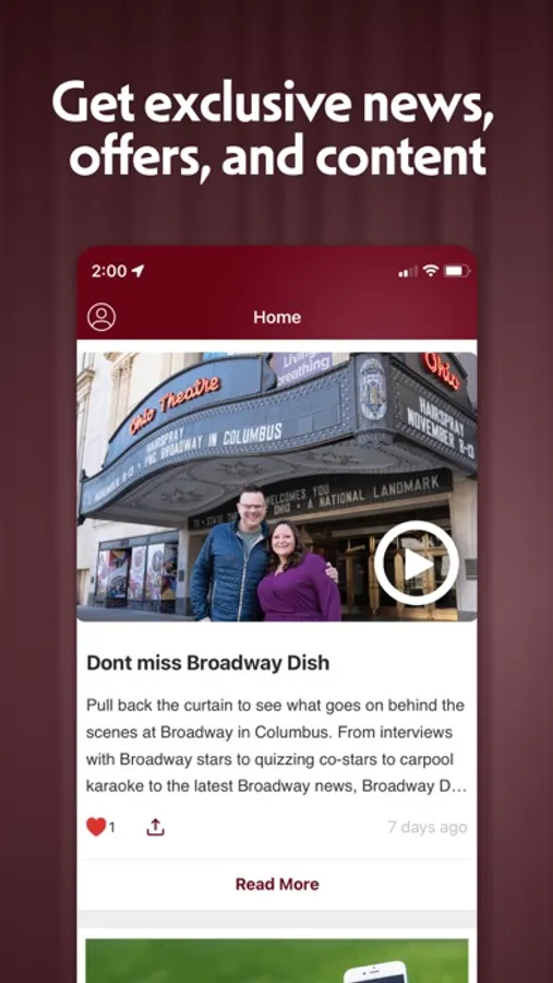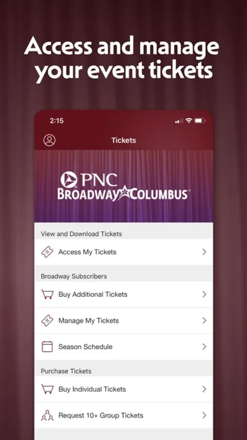 Broadway In Columbus (BIC) is proud to offer an app for ticket holders to manage all ticketing needs, access show updates, and even purchase tickets. Users can link their Ticketmaster account to BIC to allow for seamless mobile entry into each show at the Ohio or Palace Theatres. Season subscribers can access all subscriber resources, such as purchasing additional tickets, exchanging tickets if a conflict comes up or accessing their invoice at renewal time.