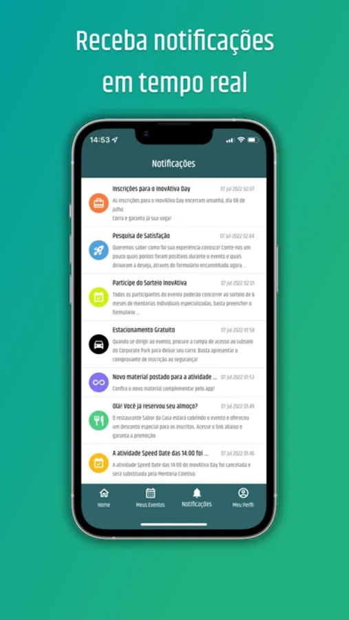 Pelo app. InovAtiva - Eventos e Inovação é possível acompanhar toda a programação do InovAtiva, como o InovAtiva Day e o InovAtiva Experience, fazer a inscrição e o credenciamento para os eventos. O aplicativo também envia notificações em tempo real, lembrando dos eventos, avisando qualquer alteração e também disponibilizando o mapa para você chegar até o local da programação.
