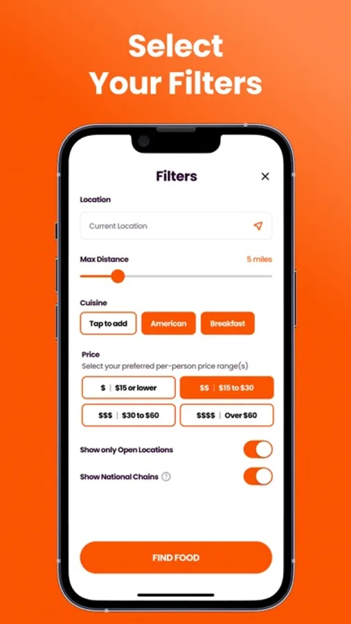 • Narrow down your choices by selecting filters based on distance, price range, cuisine type, and more!