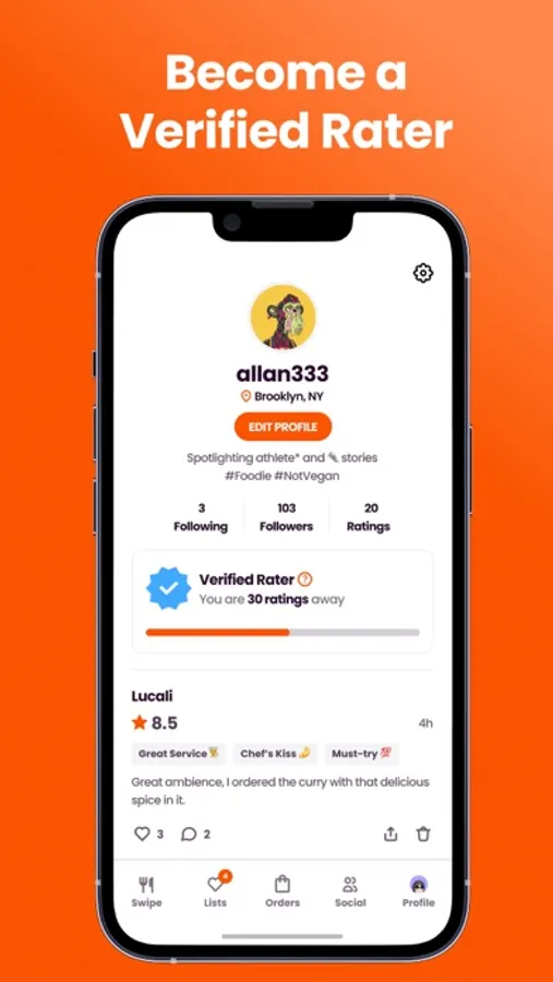 • When you swipe right on a restaurant profile, the profile is added to your selected list