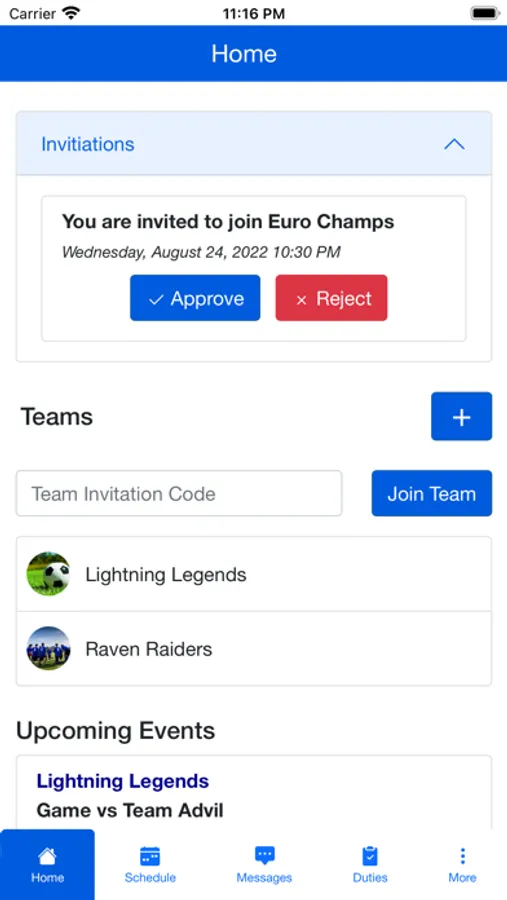 • Seamless Schedule Coordination: Keep your team on track with intuitive event and game scheduling.
