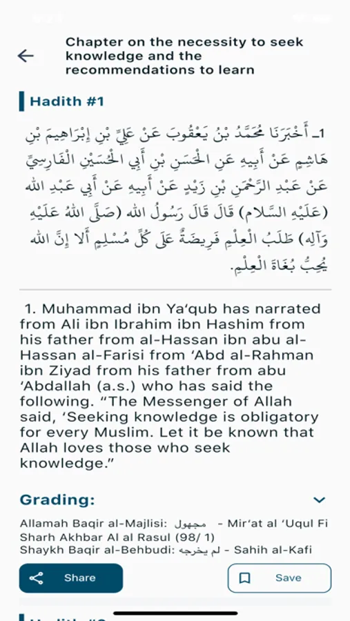 - Share function, share your favourite ḥadīth with its reference immediately to your favourite messaging apps