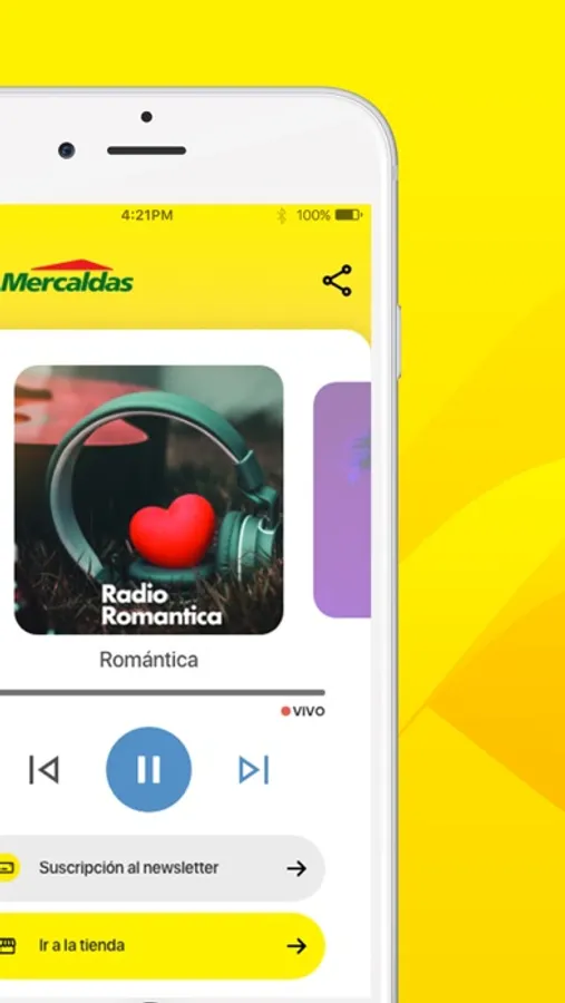 Escucha aquí una variada programación musical y entérate además de nuestras ofertas y promociones de cada día mediante nuestro Newsletter.