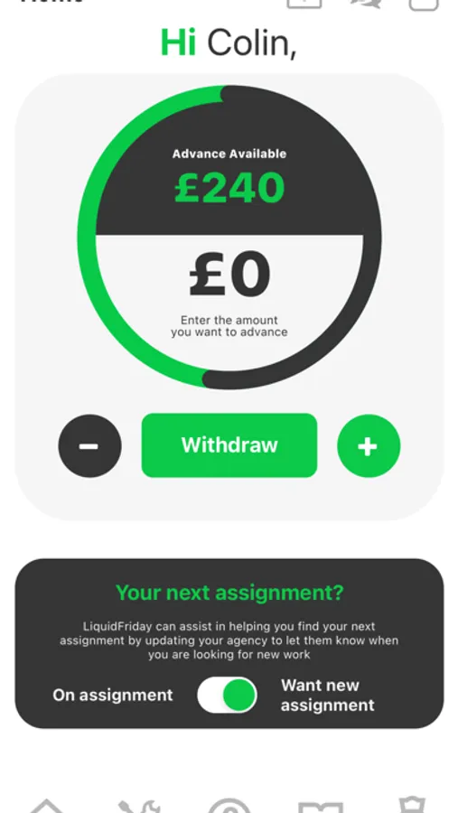 From requesting advances and viewing your latest payslips to booking time off and accessing private GP healthcare the Liquid Friday App does is all from your mobile phone, you can even use it to let us and your agency know when you are available for your next assignment.