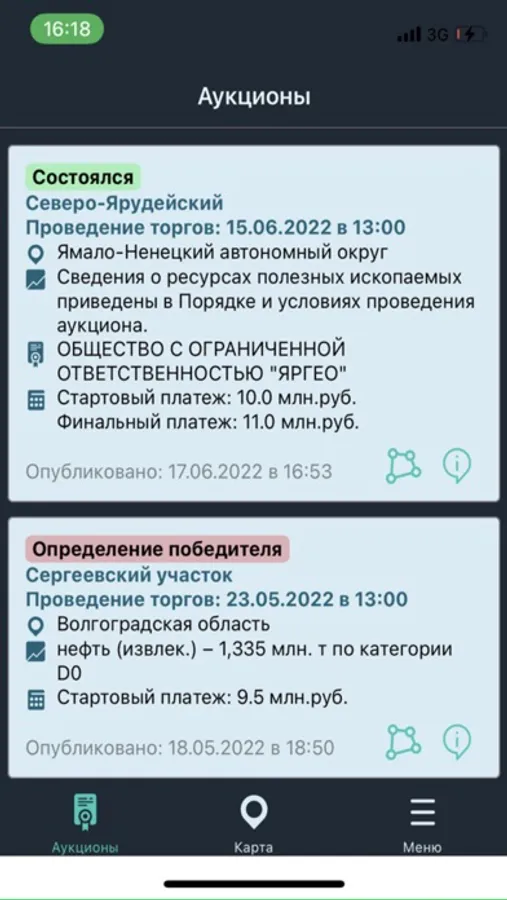 Приложение для оценки участков недр, сбора информации о новых участках нераспределенного фонда, ведения истории аукционных изменений,