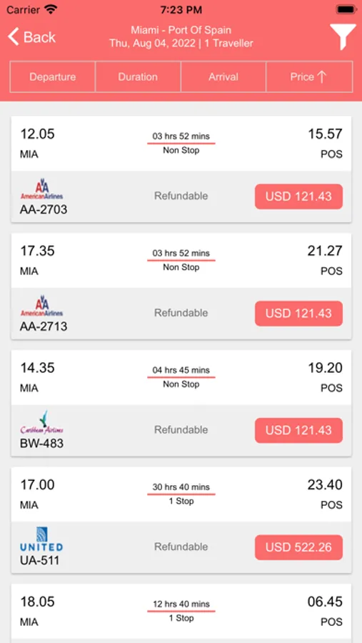 • Filter options based on stops, airlines, departure time and much more.