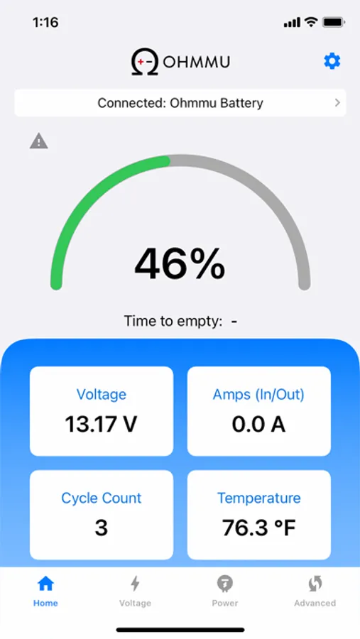 This app is also used to perform battery resets and will be used to reprogram BMS settings in the future. Future updates will include compatibility with Ohmmu Smart devices for a seamless mobile smart-RV/boat experience.
