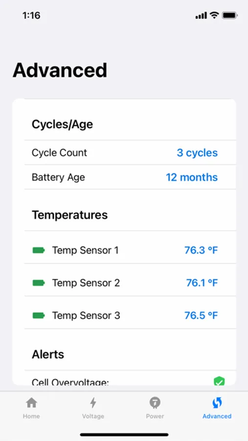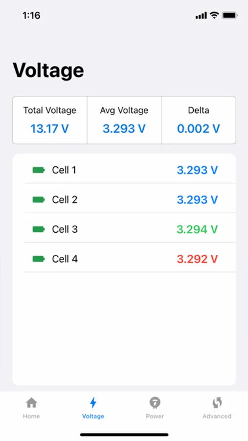 Ohmmu Energy's interface app for our 12V LFP batteries with Bluetooth-enabled BMS (and future applications) provides high-level functionality and features, such as: State Of Charge, monitoring of battery health, total and per cell voltage, amp input/output, temperature status, and more.