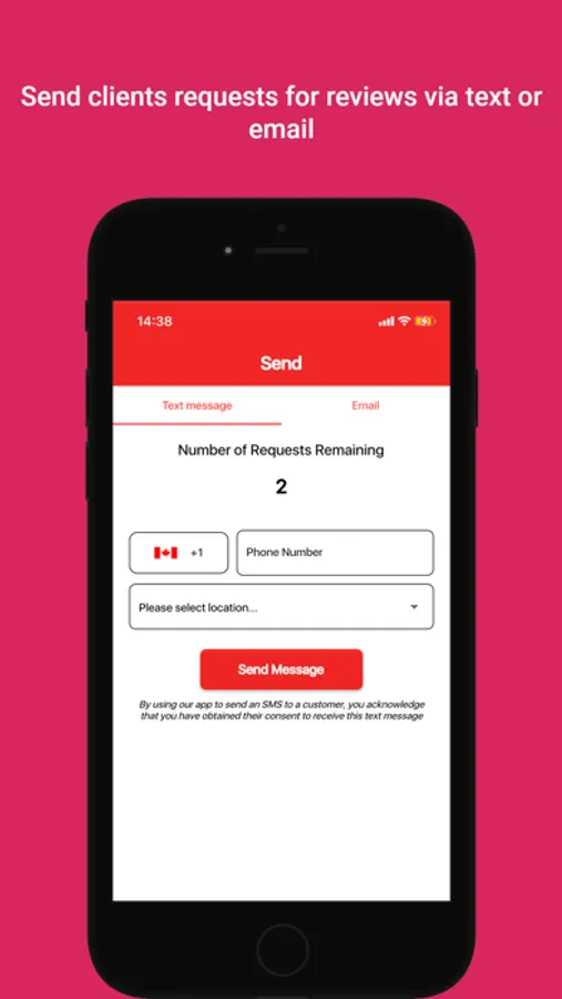Are you looking for a way to increase your ranking in online searches? One way to do that is by reviews. But getting reviews can be complicated or sometimes too much work for the customer. Where our app comes in is it allows a text or email to go directly to your customer with a link to your review site. All you need to do is enter your customer's information (only email or phone number) and press send.