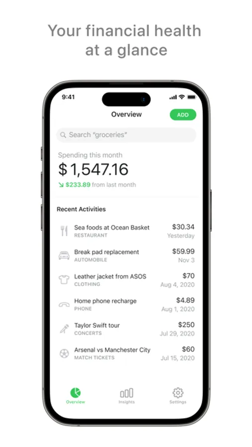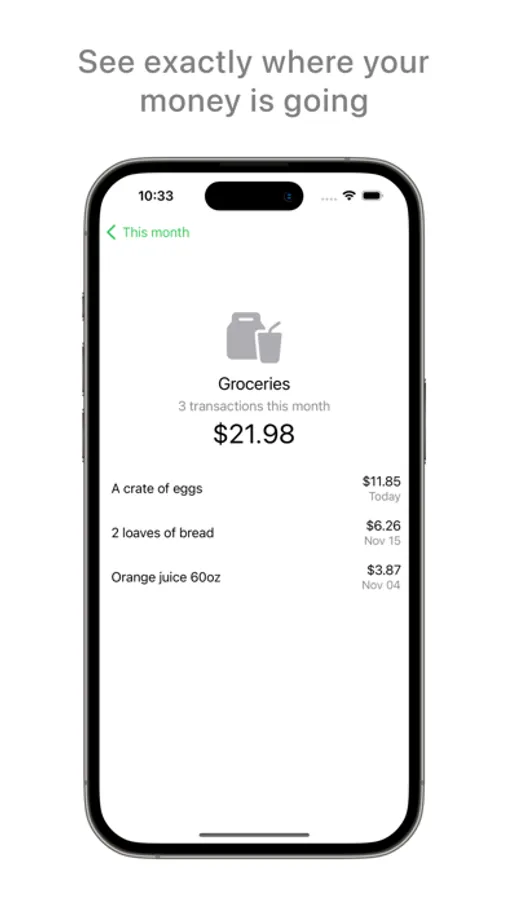 * Unlike most banking apps, our app lets you list the items in each transaction when adding a description. You can see what each expense transaction entails and how it affects your budget.