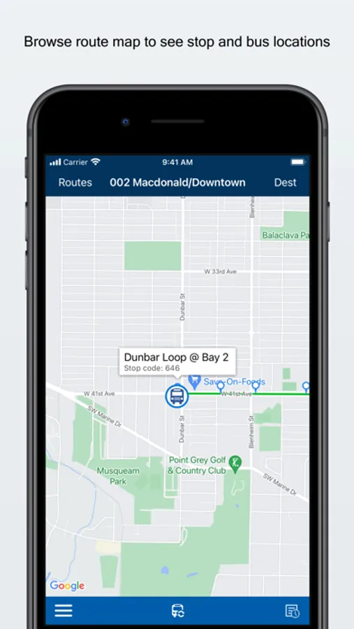 • provides easy access to bus route and stop schedule